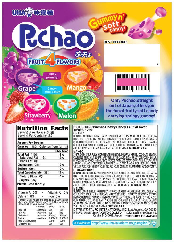 Puchao Fruit Flavor Gummy Candy by UHA Fruit Flavored Gummy n' Soft Candy